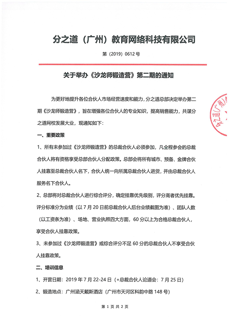 關於舉辦分之道《沙龍師鍛造營》第二期的通知。