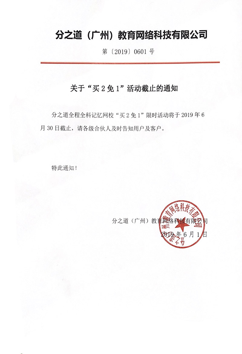關於“買2免1”活動截止的通知